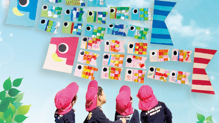 日差しが燦々と降り注ぐ5月の青空を、キンダーキッズのみんなが作ったこいのぼりが翔けていきます。