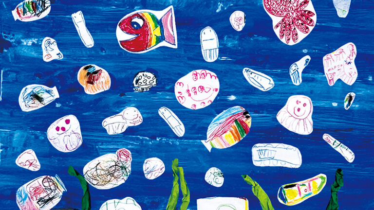 大きな魚、小さな貝、そして色とりどりの海の生き物たちが楽しそうに泳いでいます。砂の上では、緑の海藻がゆらゆらと揺れて、海の世界を一層いきいきと彩っています。海の中の仲間たちが織りなすにぎやかな世界は、キンダーのみんなの個性そのもの。ひとりひとりの輝きが集まって、海の中を明るくしているようですね。 - 1-2P★My Stepping Stone〈File10〉スタート地点はキンダーキッズ。卒園後、自らの力で切り開いたフィールドで、奮闘している卒園生をご紹介します。