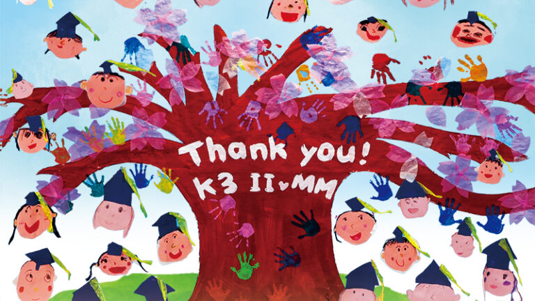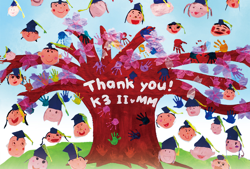 「Thank you」の文字とともに描かれたこの風景からは、キンダーで過ごした日々への感謝と、仲間と育んできた時間のあたたかさが伝わってきます。